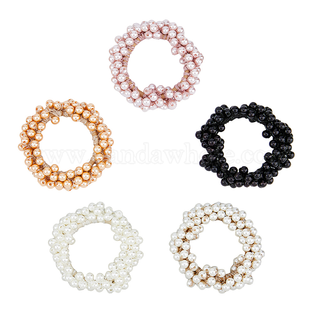 эластичные резинки и пластиковые резинки для волос с бусинами из искусственного жемчуга: внутренний диаметр около 43 мм., шириной 13 мм , 5 цветов, 1 шт / цвет, 5шт;