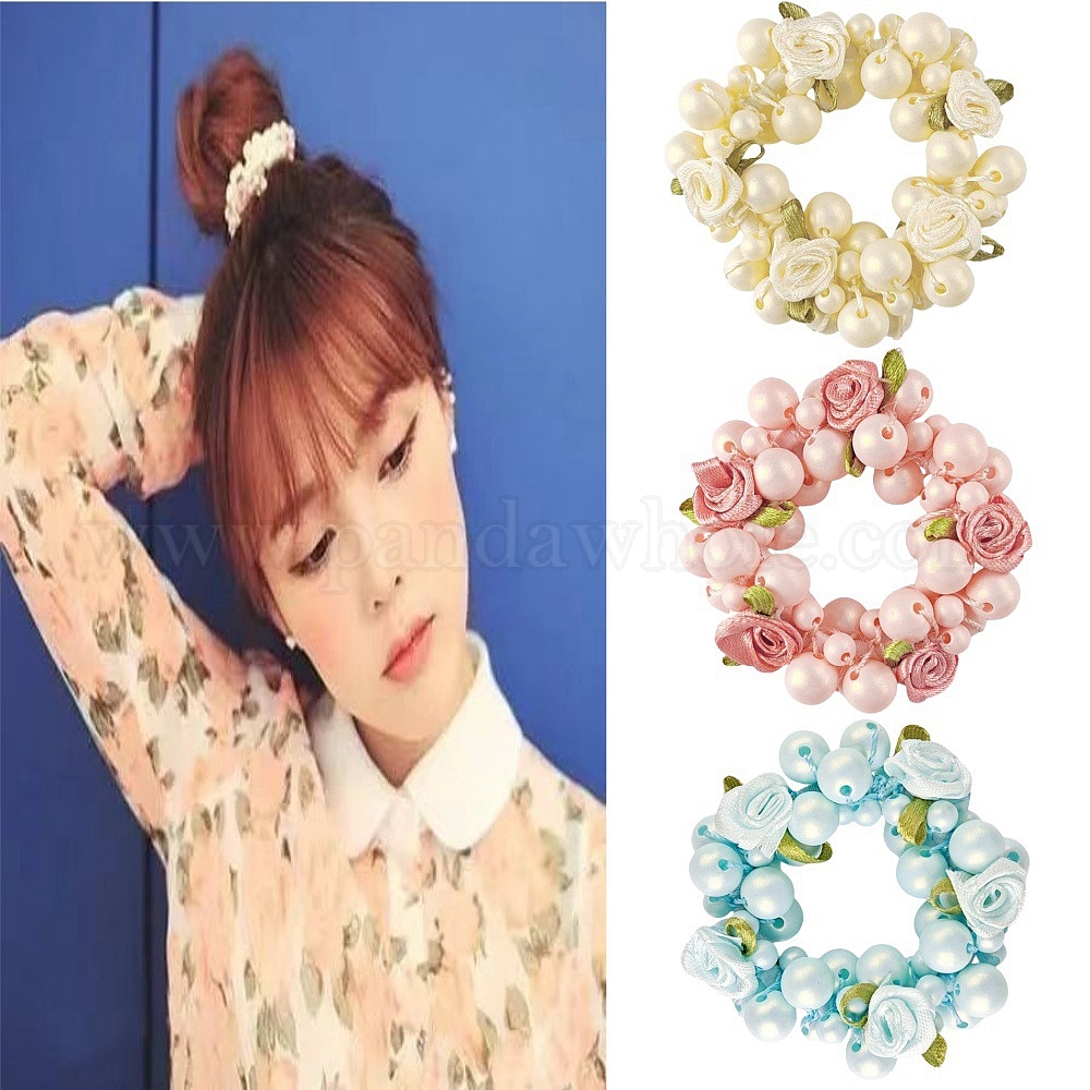 Ткань эластичные аксессуары для волос, с имитацией жемчуга, для девочек или женщин, резинка для волос / резинки для волос