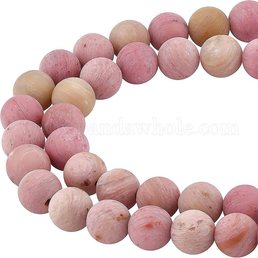 матовые круглые бусины из натурального родонита: около 8мм в диаметре, Отверстие : 1 мм; около 47~49 шт / нитка, 14.9~15.6 дюйм, 2 пряди;
