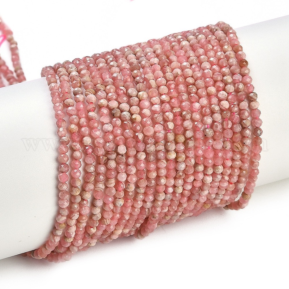 Природные родонит бисер нитей, граненые, класс А, круглые