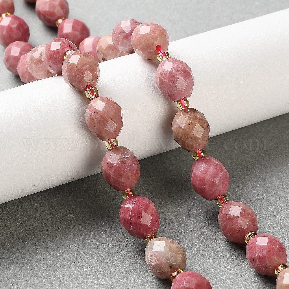 • Родонит Природные родонит бисер нитей, граненые, овальные, с бисером, 10~10.5x9 мм, отверстие : 1.2 мм, около 31~32 шт / нитка, 15.31~15.75'' (38.9~40 см)