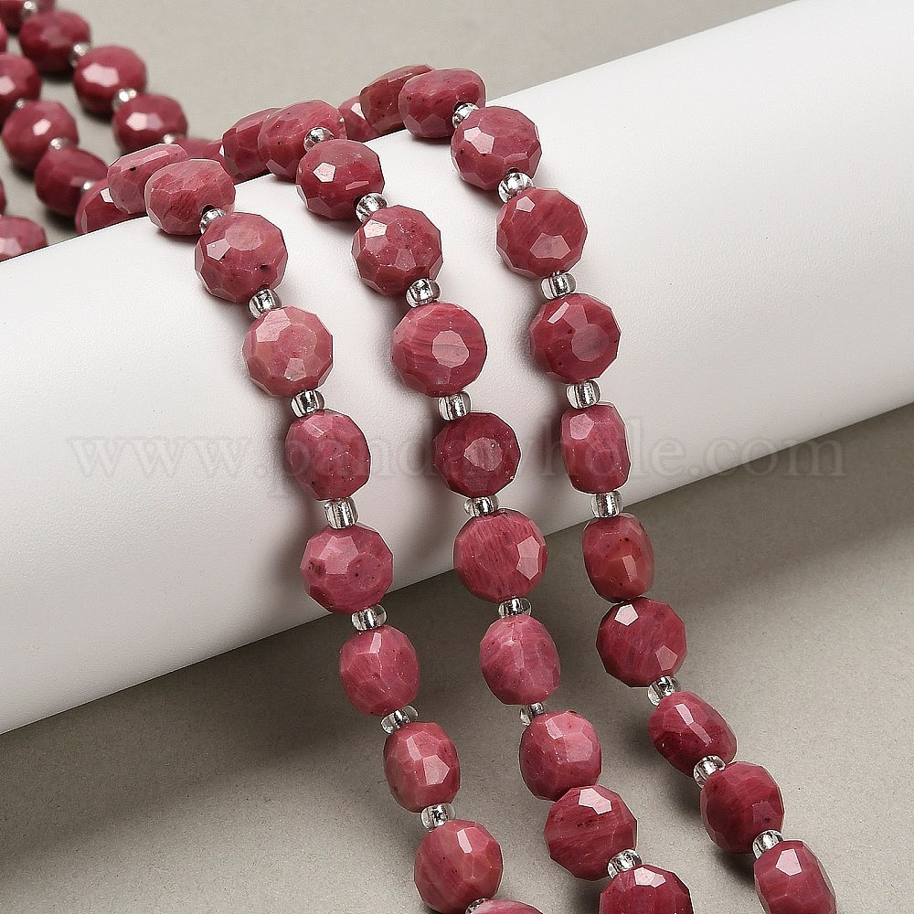Природные родонит бисер нитей, плоско-круглые, граненые, с бисером