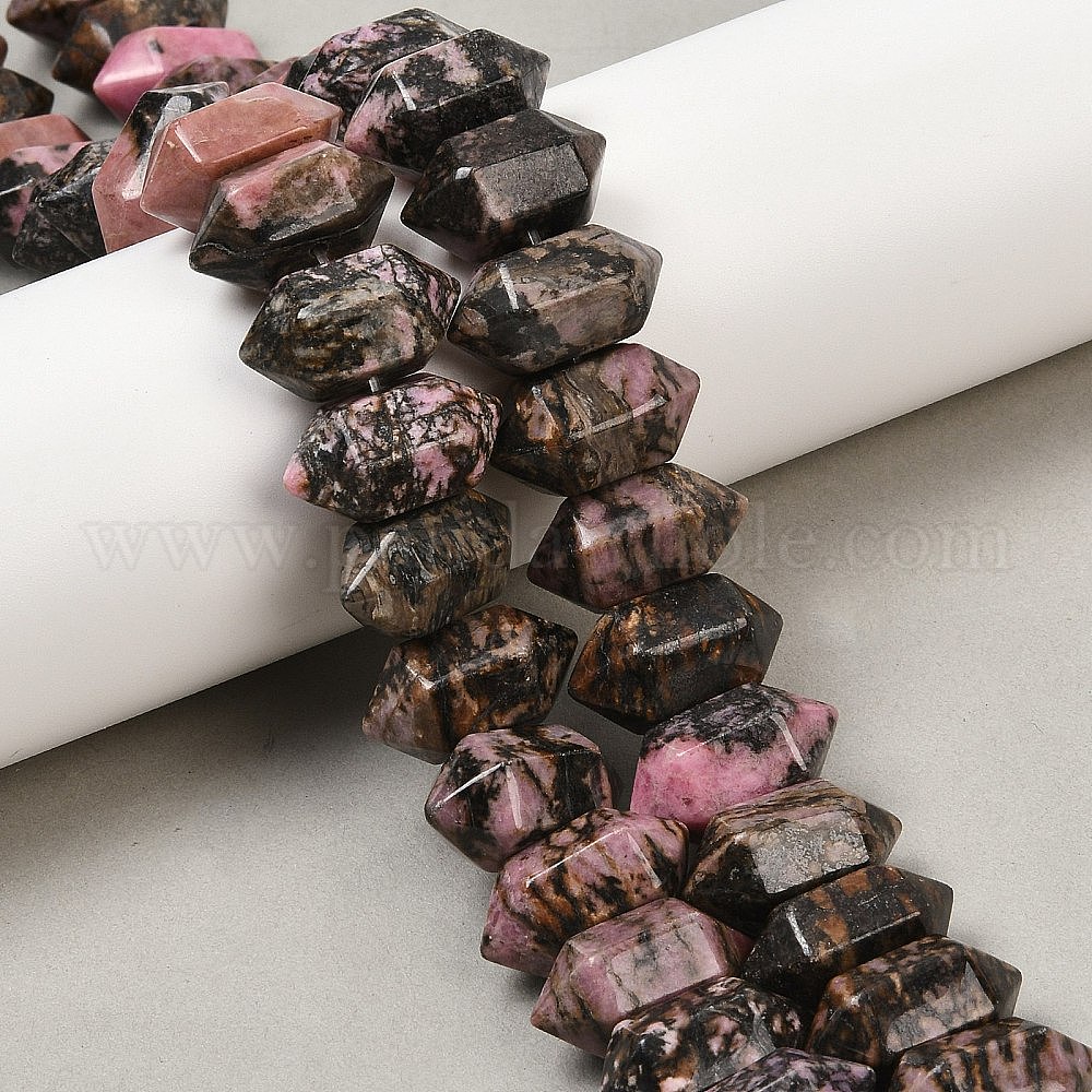 Нити бусин из натурального родонита с двойными концами, кусковая пуля, граненые