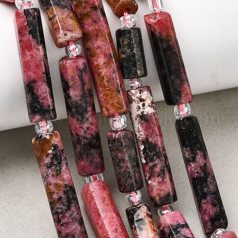• Родонит Природные родонит бисер нитей, колонка, с бисером, 14~30x6.5~7.5x6.5~7.5 мм, отверстие : 1 мм, около 13~15 шт / нитка, 15.87'' (40.3 см) ~ 16.06'' (40.8 см)