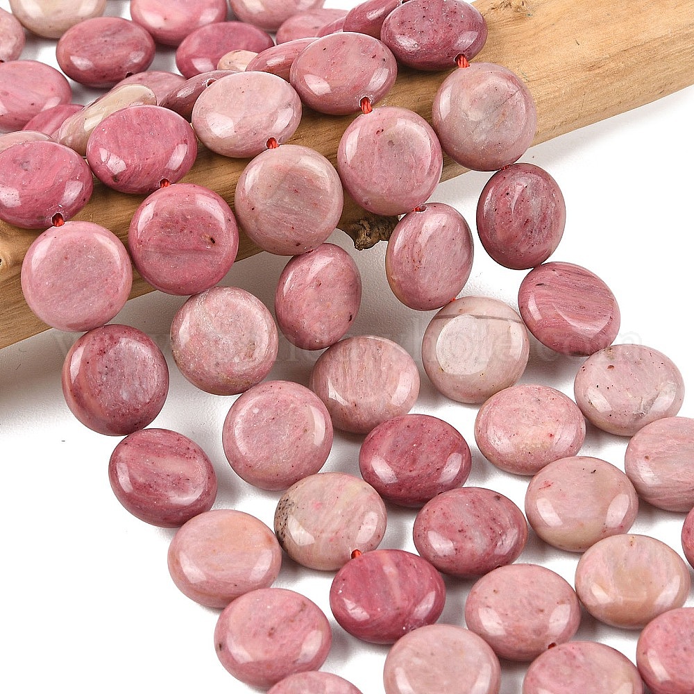 Природные родонит бисер нитей, плоско-круглые