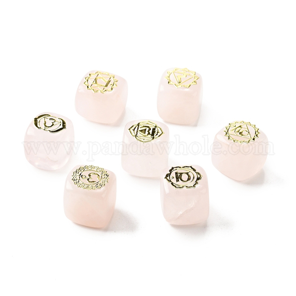 7 шт 7 стили бусины из натурального розового кварца, с долговечными пластинами из латуни с золотистым покрытием и узором в виде чакр, без свинца и без кадмия, без отверстия , кубические (02DYBS)