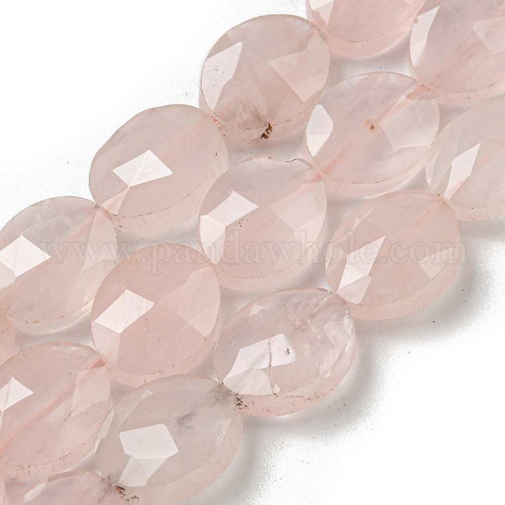 Природного розового кварца нитей бисера, граненые, Плоско-овальные