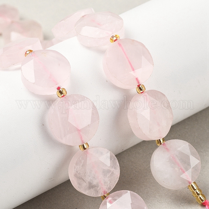 Природного розового кварца нитей бисера, граненый шестиугольный разрез, плоско-круглые, с бисером