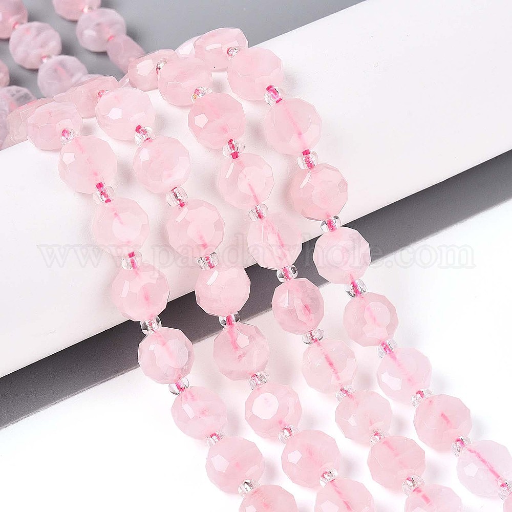 Природного розового кварца нитей бисера, плоско-круглые, граненые, с бисером