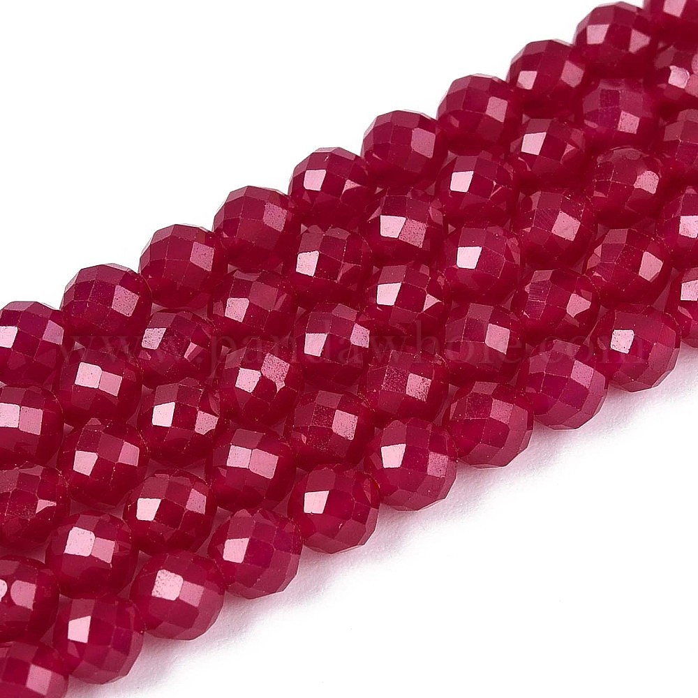 Нити бусин из красного корунда, выращенного в лаборатории, граненые, круглые (034FYN)