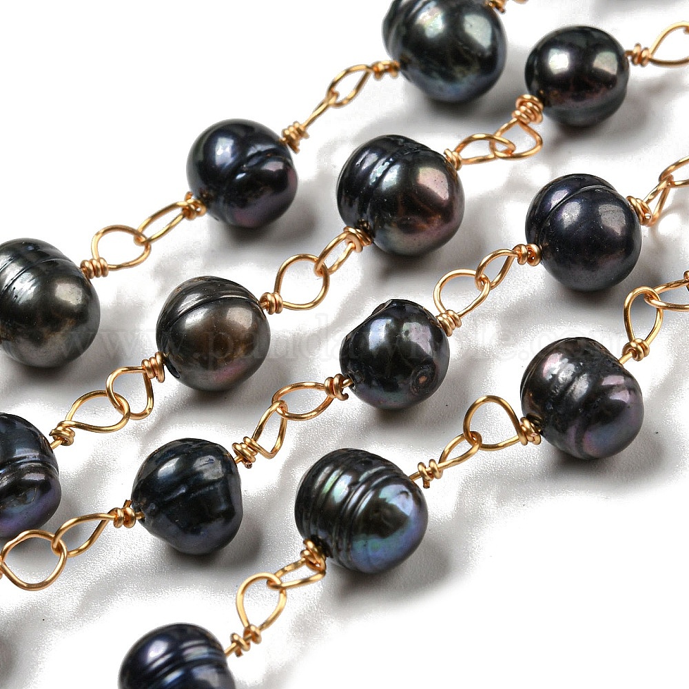 • Настоящее золото 18K 1 цепочки из искусственного пресноводного жемчуга ручной работы из бисера, с медной проволокой, пайки, реальный 18 k позолоченный, 6~10x7~9x4~7 мм, около 3.28 футов / прядь (1 м / прядь)