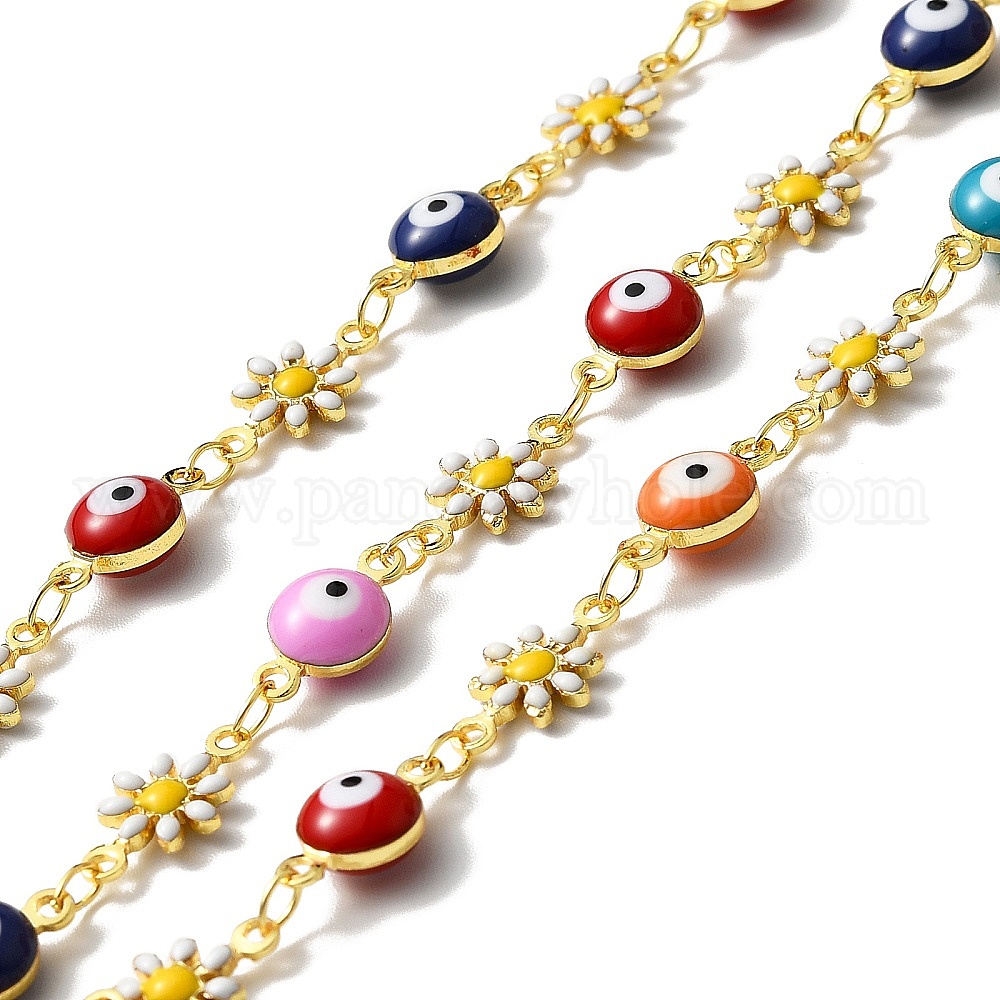 Цепочка ручной работы из латуни с эмалью в виде цветка и сглаза, долговечный, пайки, с катушкой