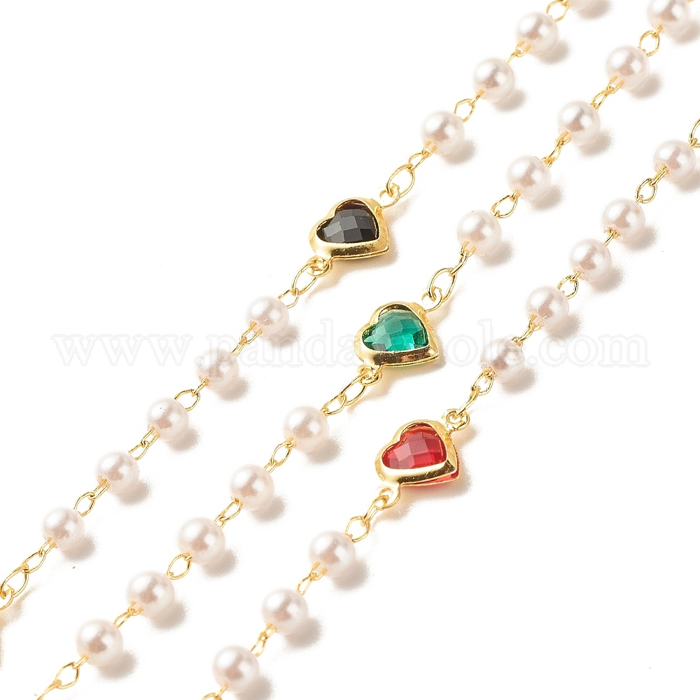 Латунные стеклянные цепи с сердечным звеном, с жемчугом из бисера, долговечный, пайки, с катушкой