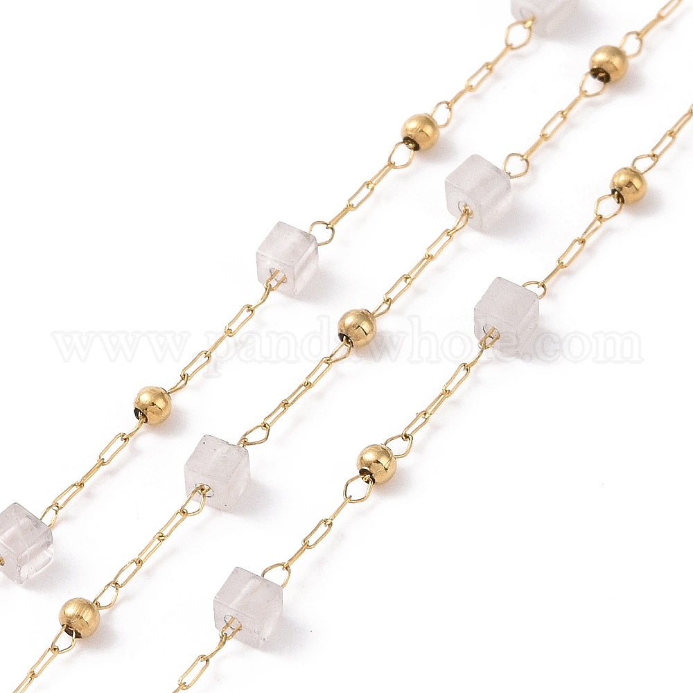 Квадратные цепочки из бисера из натуральных драгоценных камней, с золотым 304 покрытием из нержавеющей стали методом ионного напыления (IP), несварные