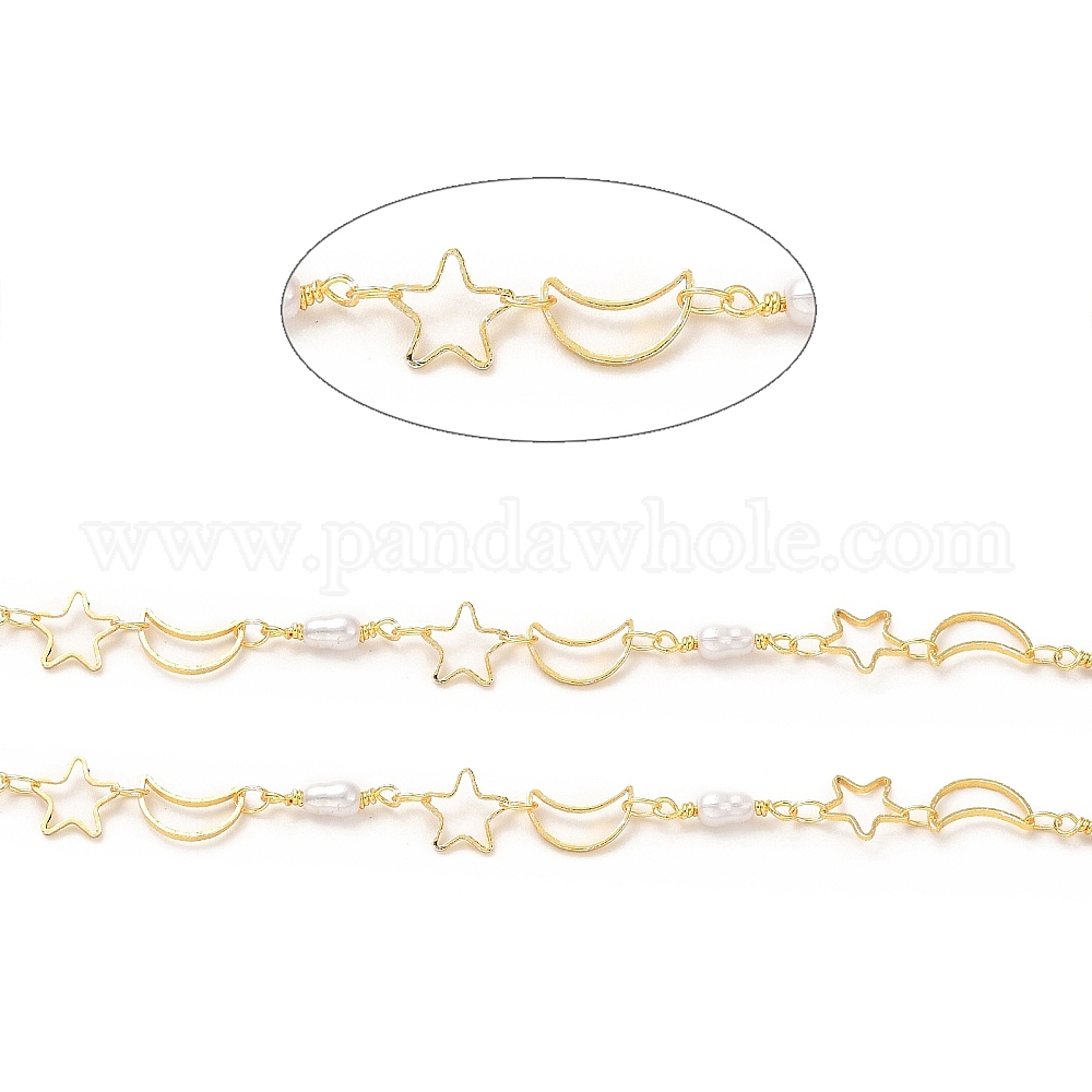 Латунные цепи со звездой и луной, с имитацией жемчуга из абс-пластика с бусинами, пайки, с катушкой