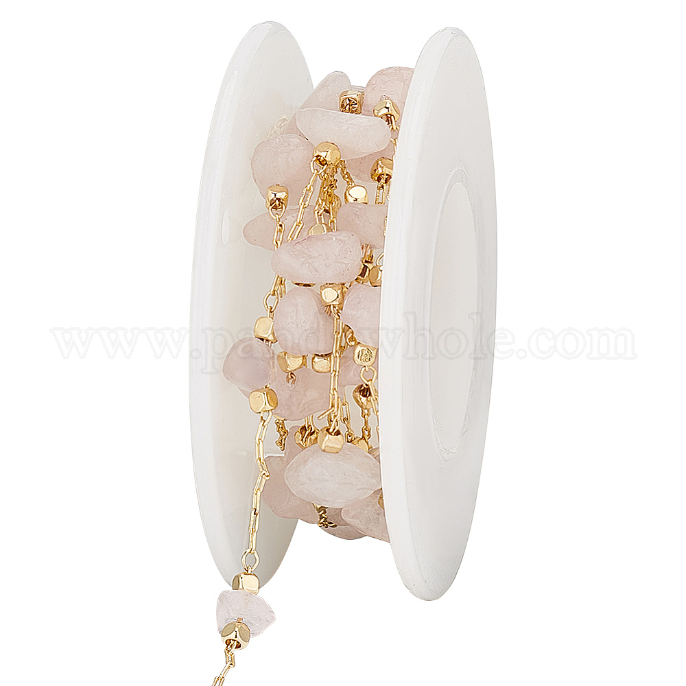 Латунные кабельные цепи, с бусинами из натурального розового кварца, пайки, с катушкой