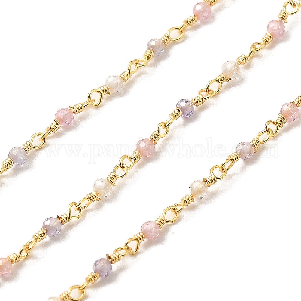 Цепочка из латуни ручной работы, со стеклянными бусинами, пайки, с катушкой