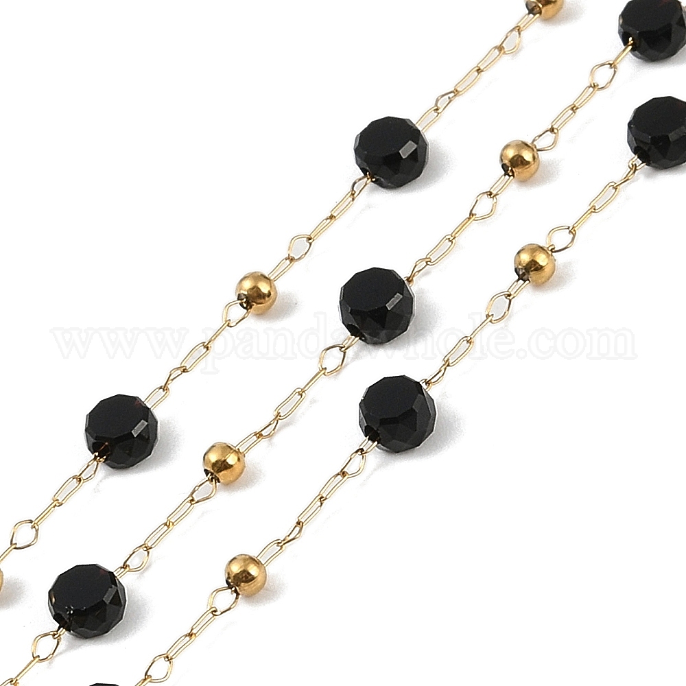 Ионное покрытие (ip) 304 звенья цепи из нержавеющей стали, со стеклянными бусинами и катушкой, пайки, чёрные
