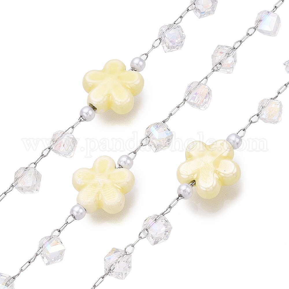 • Шампанско-Желтый Цветочные цепочки из фарфоровых бусин ручной работы, для ожерелья браслеты решений, с 304 цепями из нержавеющей стали, пайки, с катушкой, шампанское желтый, 11.5x12x5.5 мм, куб: 4.5x4.5x4.5, Ссылки: 2x1.5x0.2 мм & 2.5x1x0.2 мм, Интервал: 14 мм, около 10 м / рулон