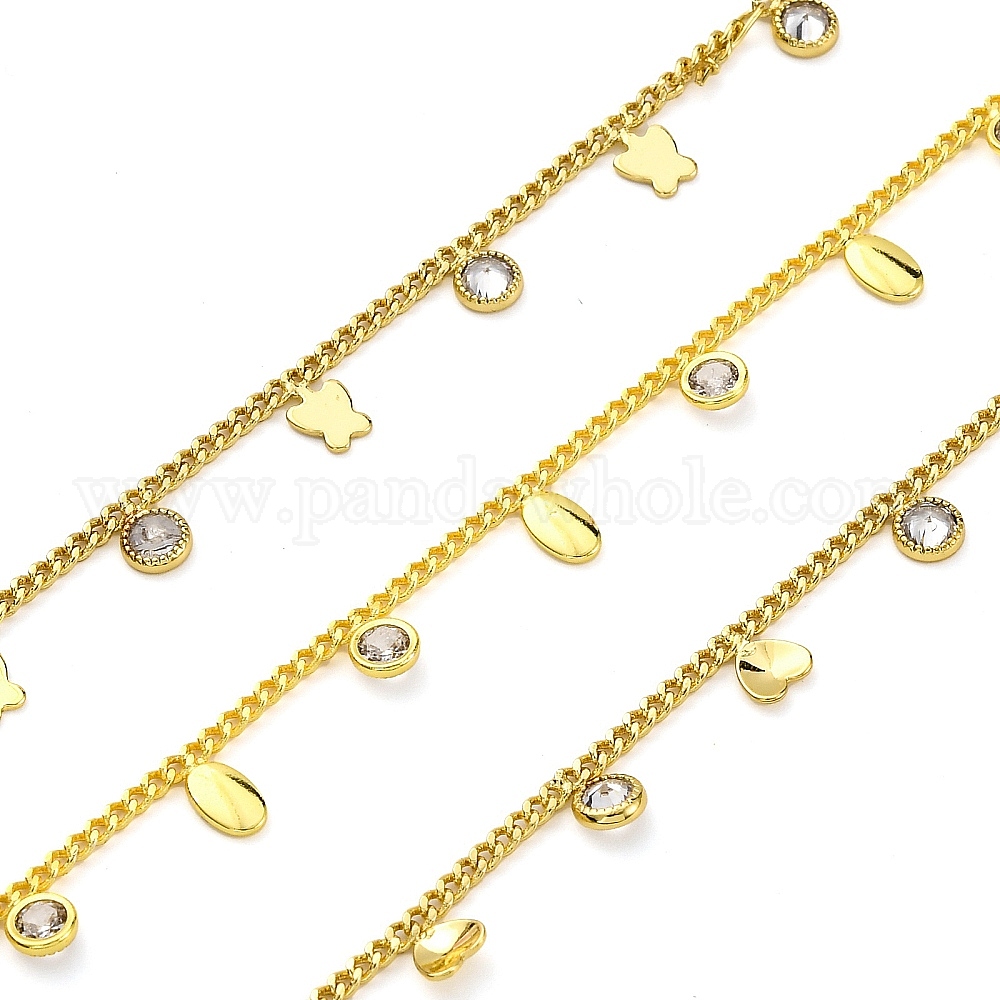 Латунные цепочки ручной работы, с четким кубического циркония, катушка, долговечный, пайки, без свинца и без кадмия
