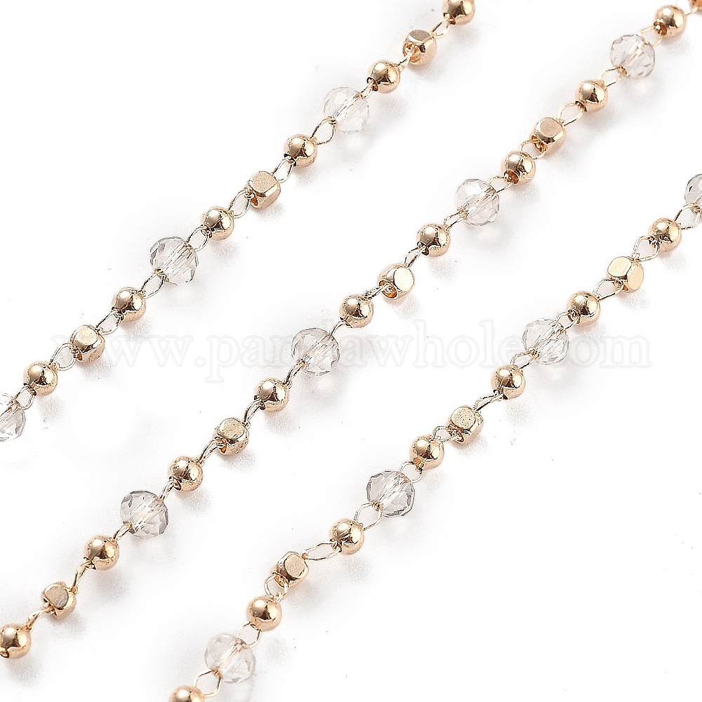 Цепочки из латунных и стеклянных бусин ручной работы, для ожерелья браслеты решений, долговечный, пайки, с катушкой