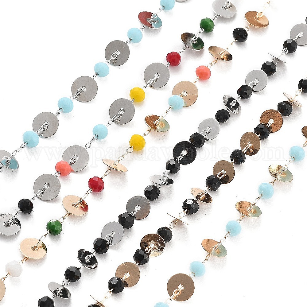 Плоские круглые цепочки из латуни и стеклянных бусин ручной работы, для ожерелья браслеты решений, долговечный, пайки, с катушкой