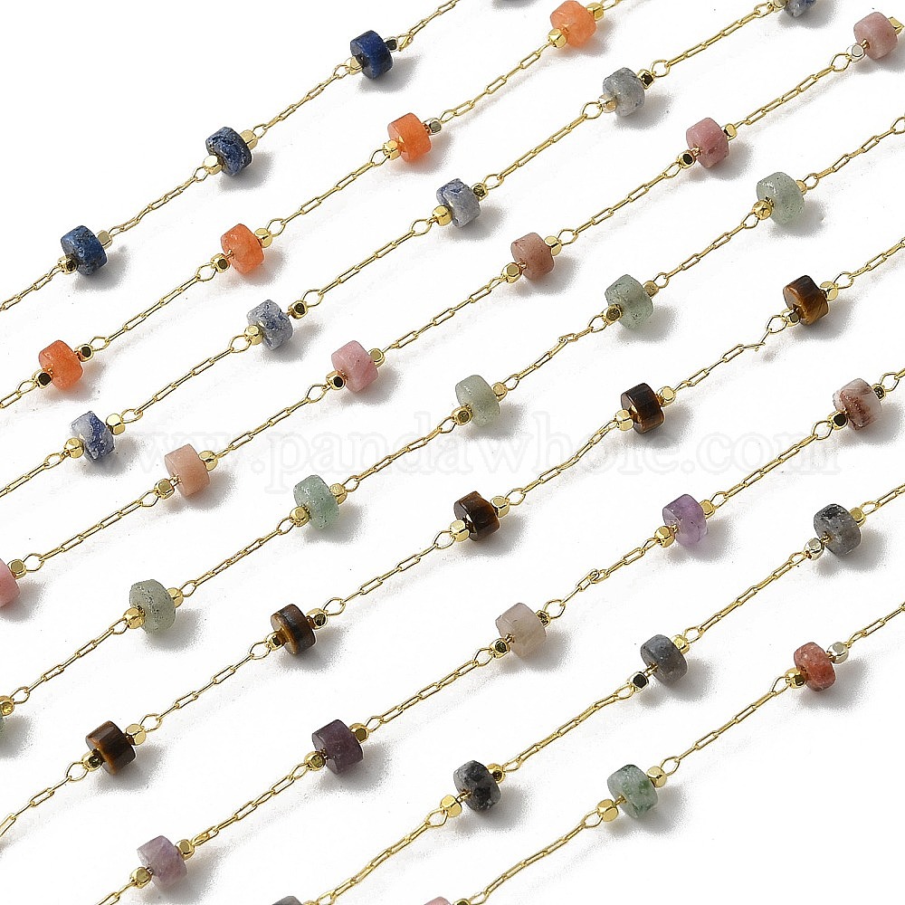 Латунные цепные цепи, с природными драгоценный камень бисером, ионное покрытие (ip), пайки, реальный 18 k позолоченный, с катушкой