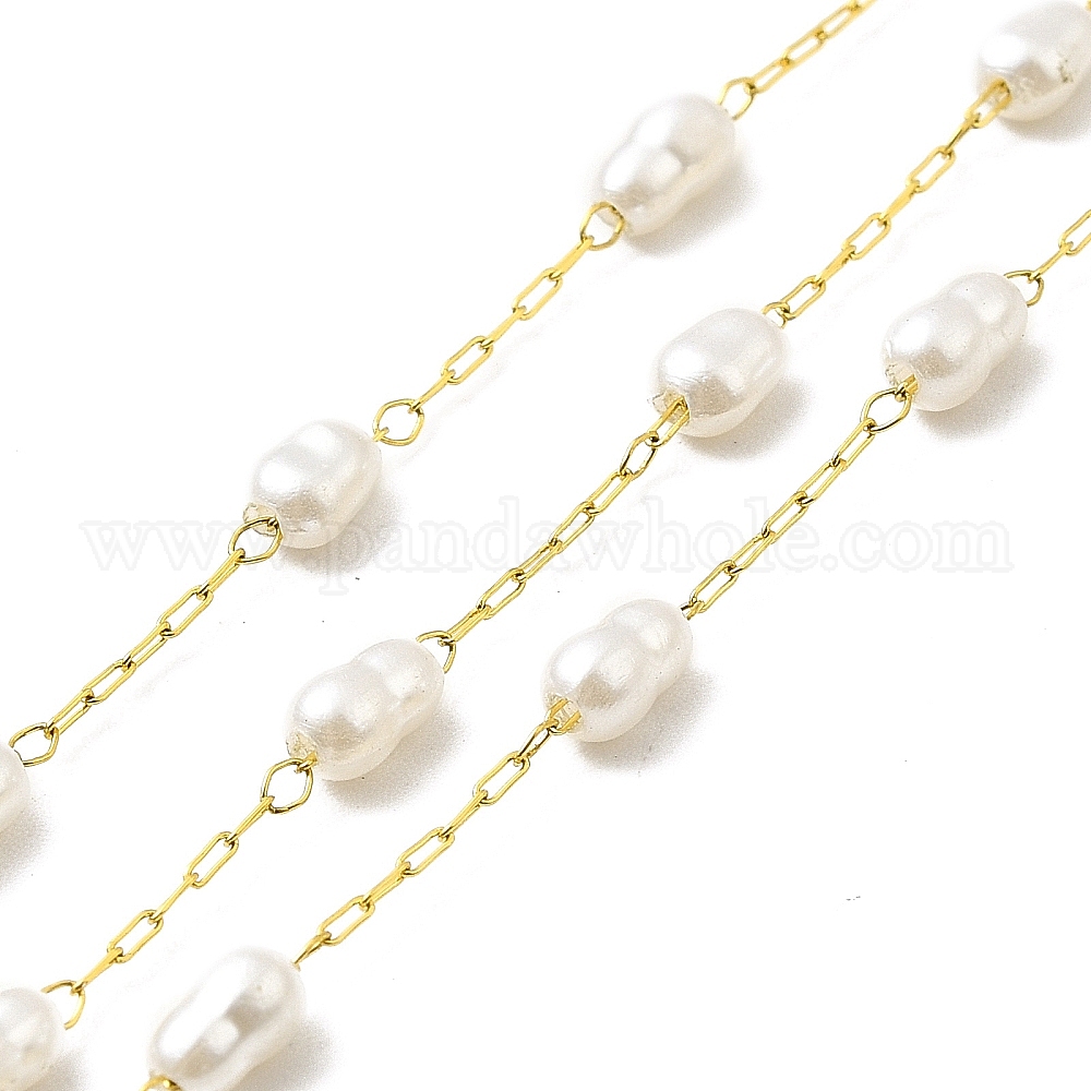 • Настоящее золото 18K Ионное покрытие (ip) 316 цепочки из хирургической нержавеющей стали со скрепками, пластиковые цепочки с имитацией жемчуга, пайки, с катушкой, реальный 18 k позолоченный, ссылка: 2.5x1.5x0.3 mm, искусственный жемчуг: 5~6x3~3.5мм