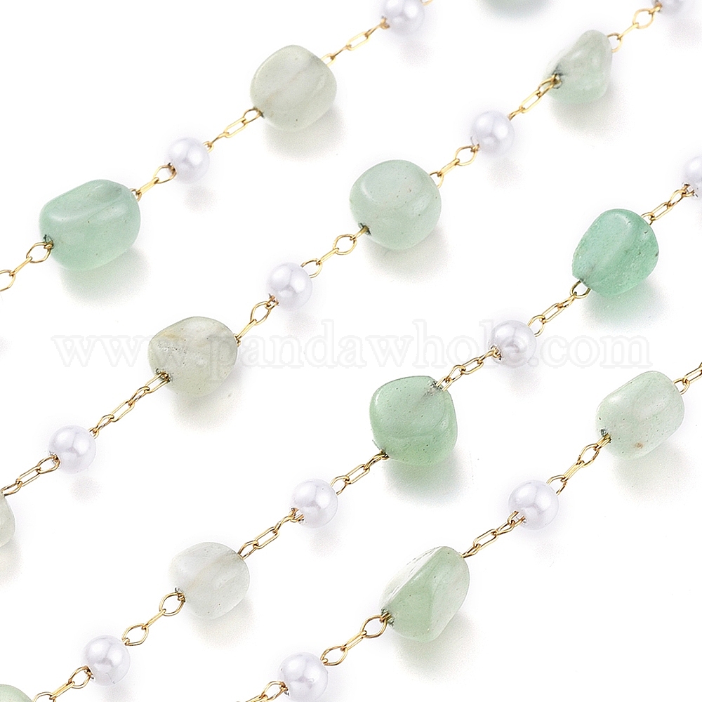 304 цепи из нержавеющей стали ссылка, с пластиковыми бусинами из жемчуга и натуральных драгоценных камней, долговечный, с катушкой, несварные, золотые