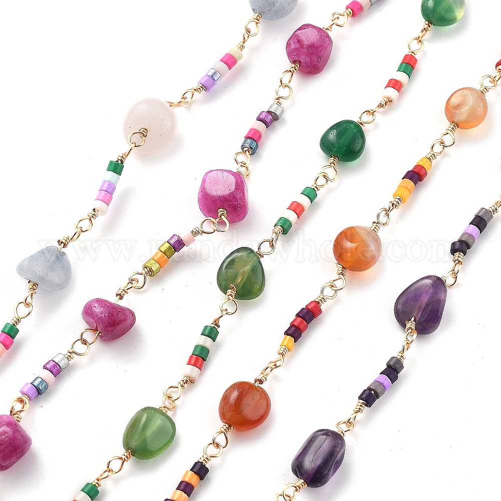 Цепи из драгоценных камней и стекла, с медными цепями, стойки покрытие, долговечный, без свинца и без кадмия, золотые, пайки, с катушкой