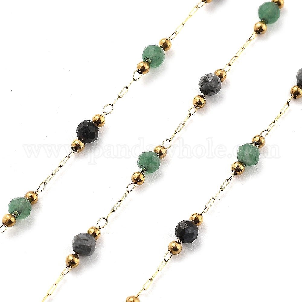 • Зеленый Авантюрин Цепочки из зеленого авантюрина и снежинки из обсидиана и нержавеющей стали, с 304 цепями из нержавеющей стали, ионное покрытие (ip), реальный 316 k позолоченный, пайки, круглые, с катушкой, 18 мм