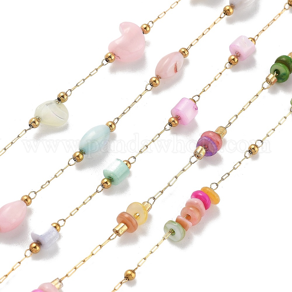 Цепи из ракушек и овальных бусин из нержавеющей стали, с 304 цепями из нержавеющей стали, ионное покрытие (ip), пайки, с катушкой