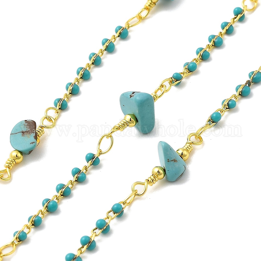 Эмалированные цепи из латуни ручной работы, с синтетическими бирюзовыми бусинами и катушкой, долговечный, пайки, без свинца и без кадмия