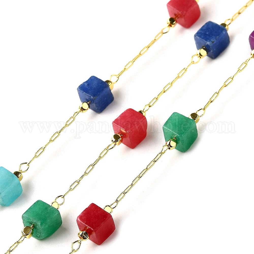 Цепочки из натурального окрашенного белого нефрита в форме кубических бусин ручной работы, пайки, с реечной обшивкой латунными выводами, долговечный, без свинца и без кадмия, с катушкой
