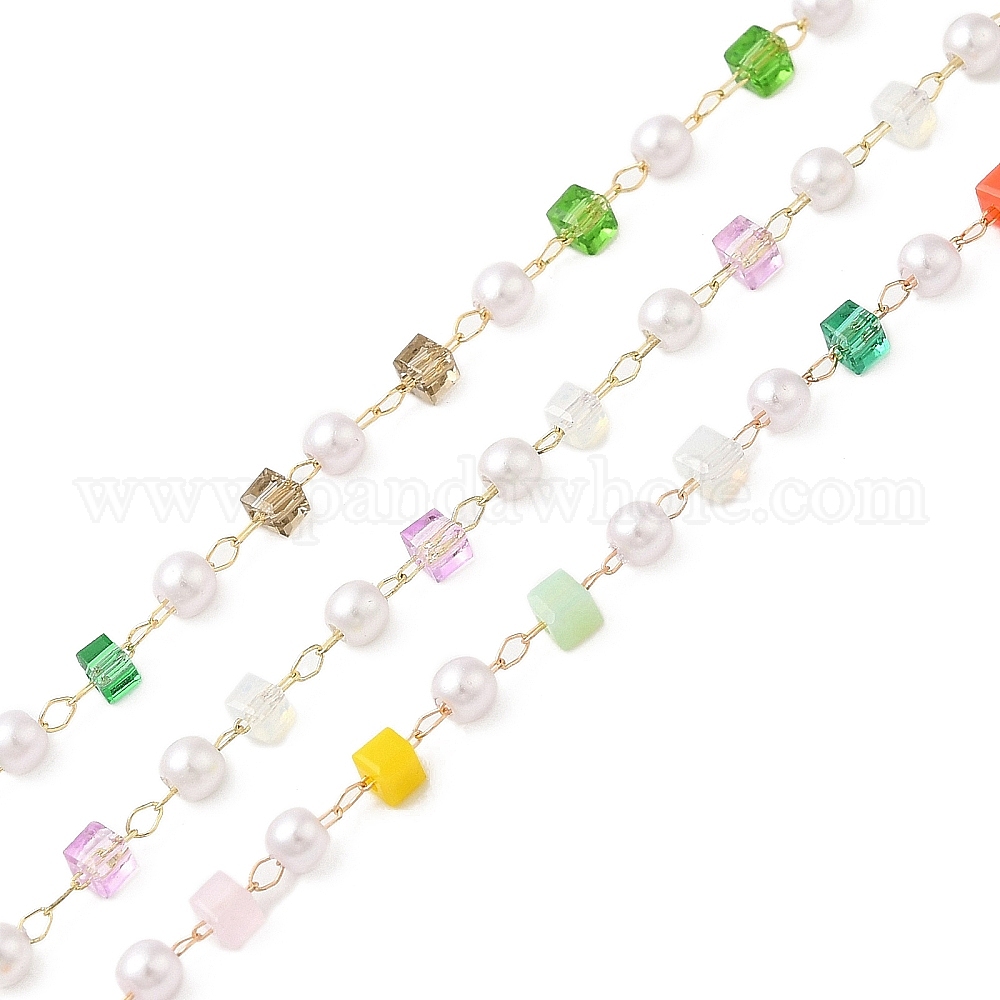 Цепочки из граненого куба из стекла и АБС-пластика с имитацией жемчуга, со светло-золотым 316 фурнитурой из хирургической нержавеющей стали, пайки