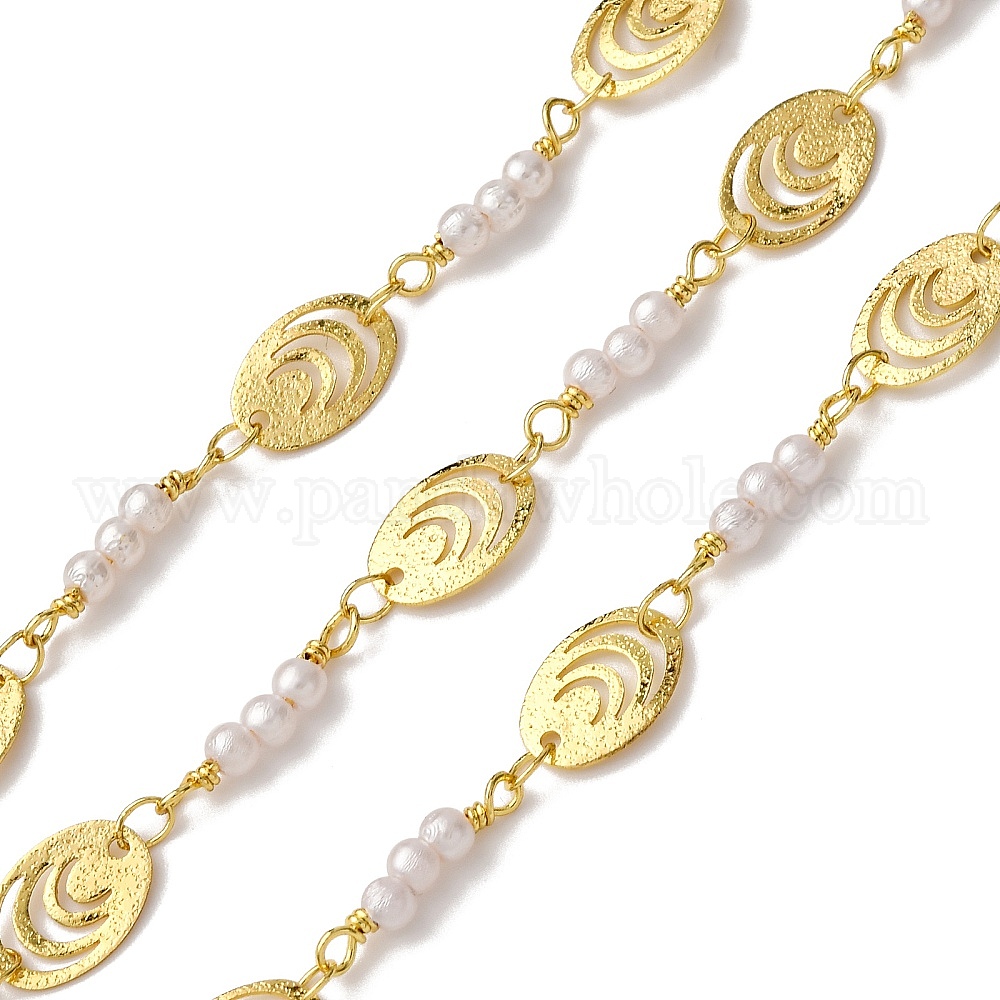 Латунные овальные звенья цепи, с имитацией груши из АБС-пластика, пайки, с катушкой