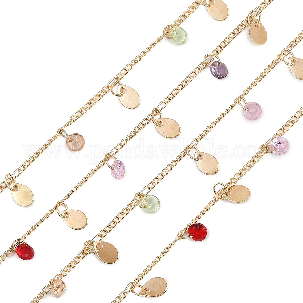 Латунная каплевидная с плоскими круглыми звеньями, со стеклом, долговечный, стойки покрытие, без свинца и без кадмия, несварные, ручной работы из бисера цепи