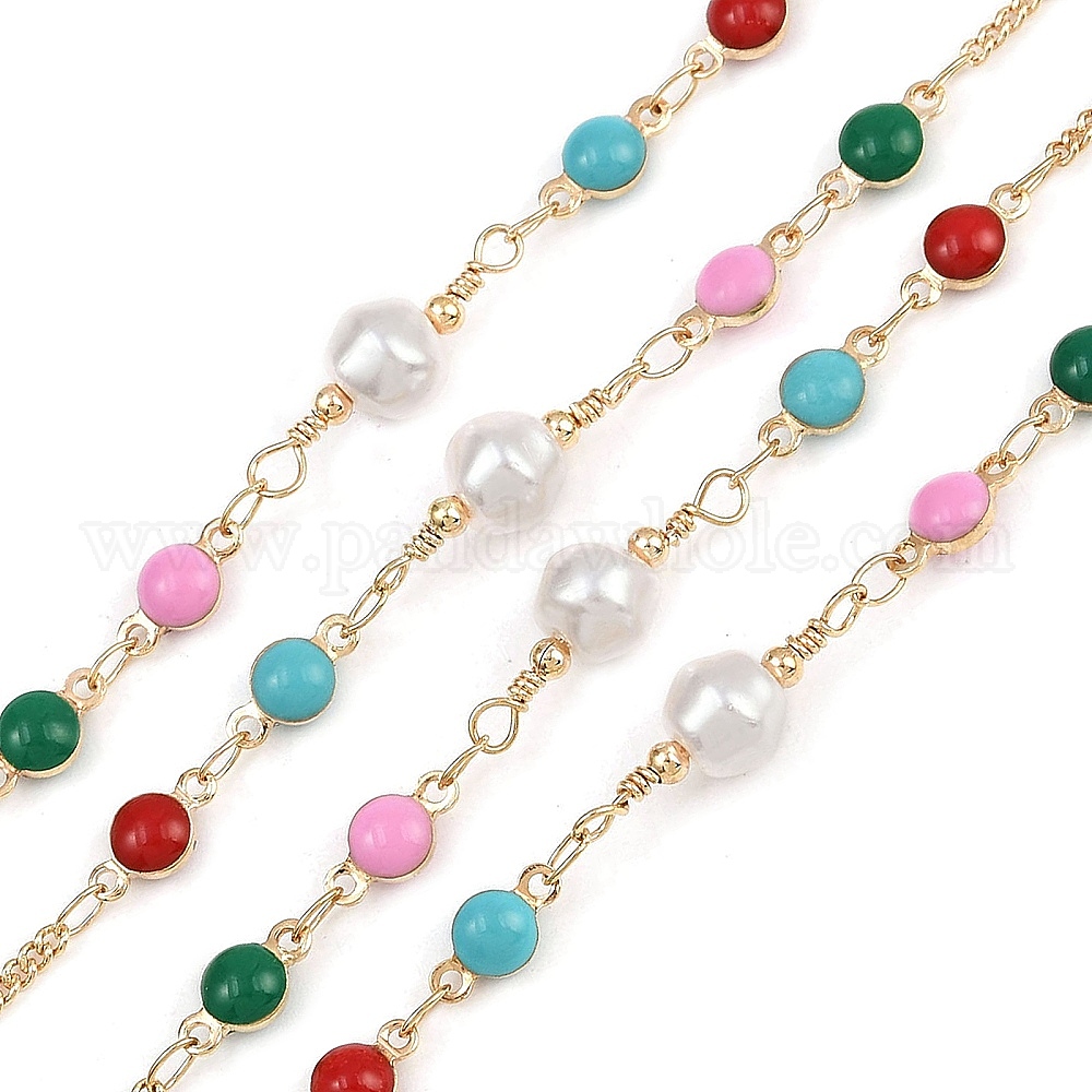 Латунные круглозвенные цепи, с эмалью и абс пластиком жемчугом, долговечный, стойки покрытие, без свинца и без кадмия, несварные, ручной работы из бисера цепи