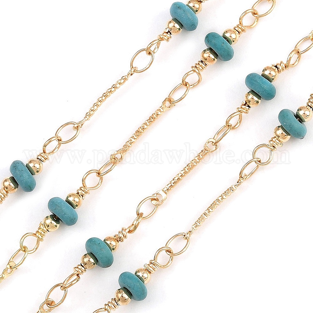 Латунные дисковые звенья цепи, с синтетическими бирюзовый, долговечный, стойки покрытие, без свинца и без кадмия, несварные, ручной работы из бисера цепи