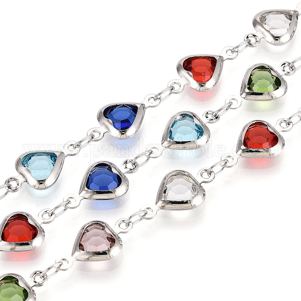 Латунные цепочки с сердечками ручной работы, со стеклом, пайки, с катушкой