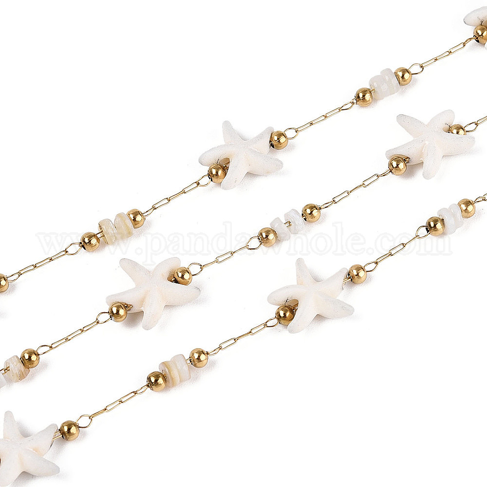 Ручная работа 316 цепочки из нержавеющей стали в форме морской звезды, с синтетической бирюзой, ракушками и бусинами из нержавеющей стали, пайки, с катушкой, реальный 18 k позолоченный