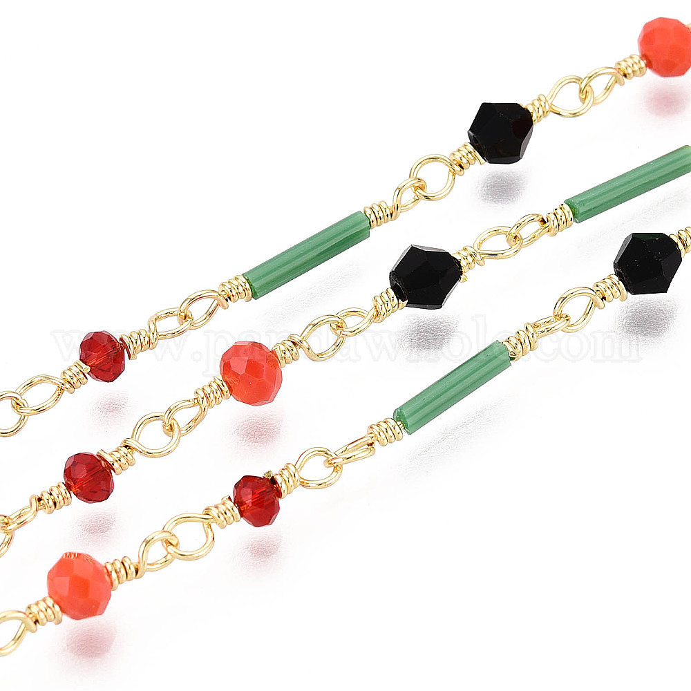Цепочки ручной работы из латунных звеньев и стеклянных бусин, с катушкой, пайки, реальный 18 k позолоченный