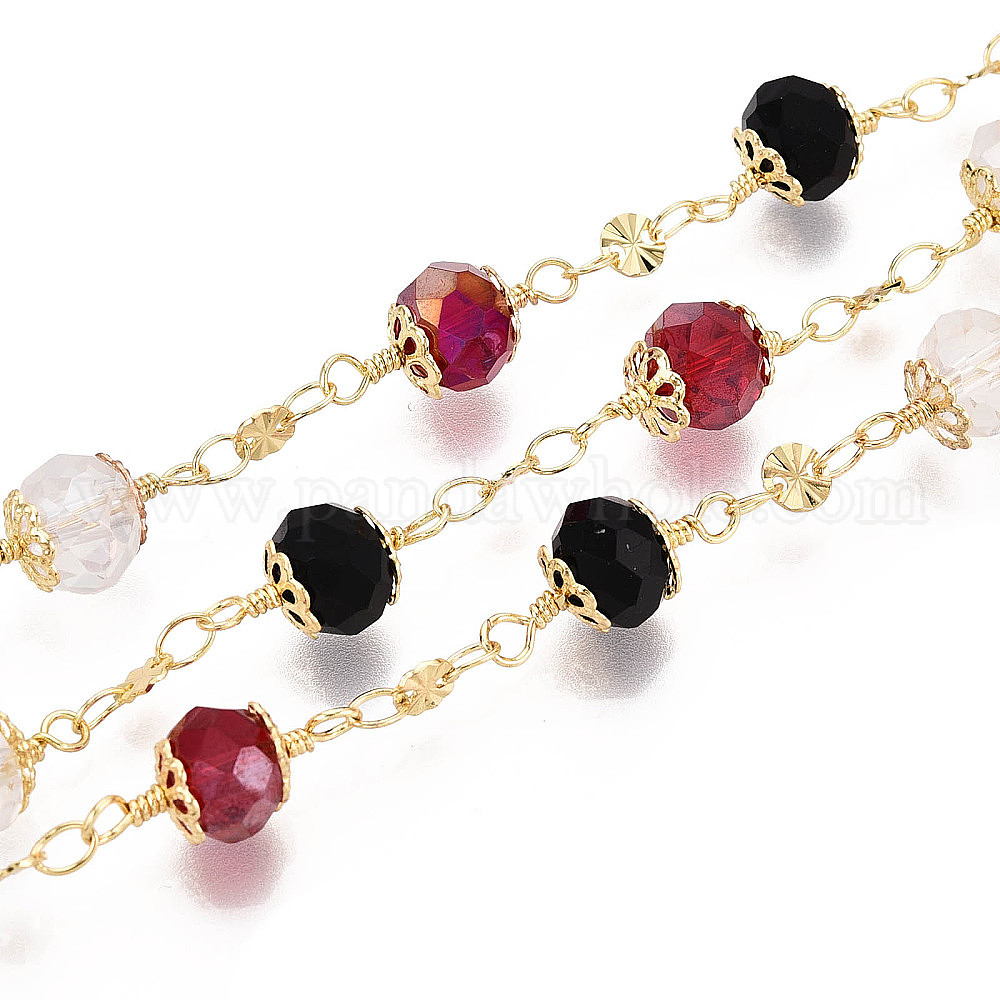 Цепочки ручной работы из латуни и стеклянных бусин, с катушкой, пайки, реальный 18 k позолоченный
