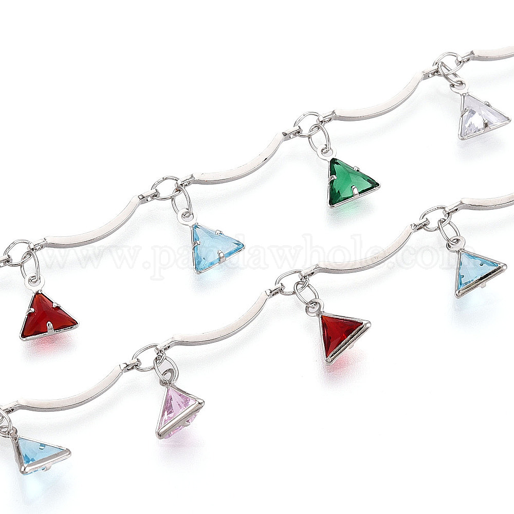 Латунные зубчатые стержневые цепи, с подвеской-треугольником из кубического циркония, пайки, с катушкой