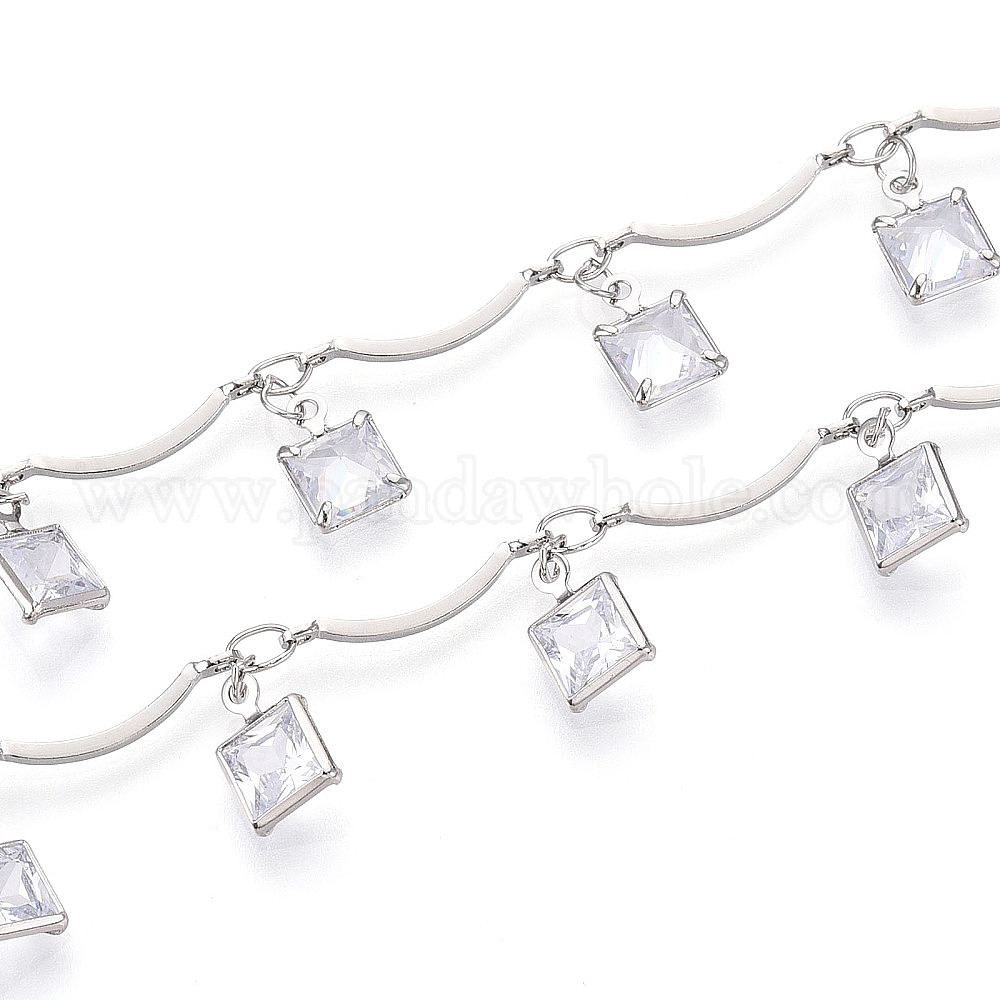 Цепи из латуни и стекла с фестончатыми прутьями, с квадратным шармом, пайки, с катушкой