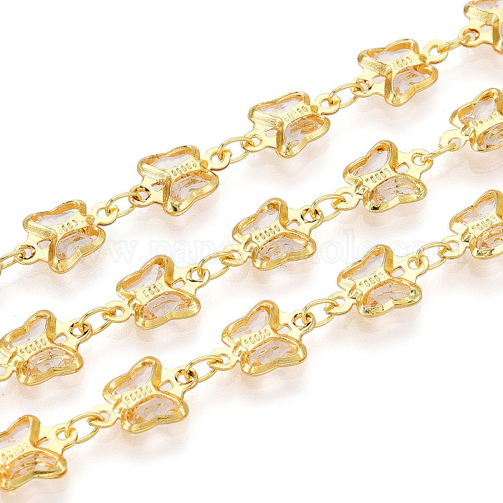 • Прозрачный Латунные стеклянные цепочки-подвески в виде бабочек, пайки, с катушкой, золотые, прозрачные, 10.5~11x7x2 мм, около 32.81 футов (10 м) / рулон