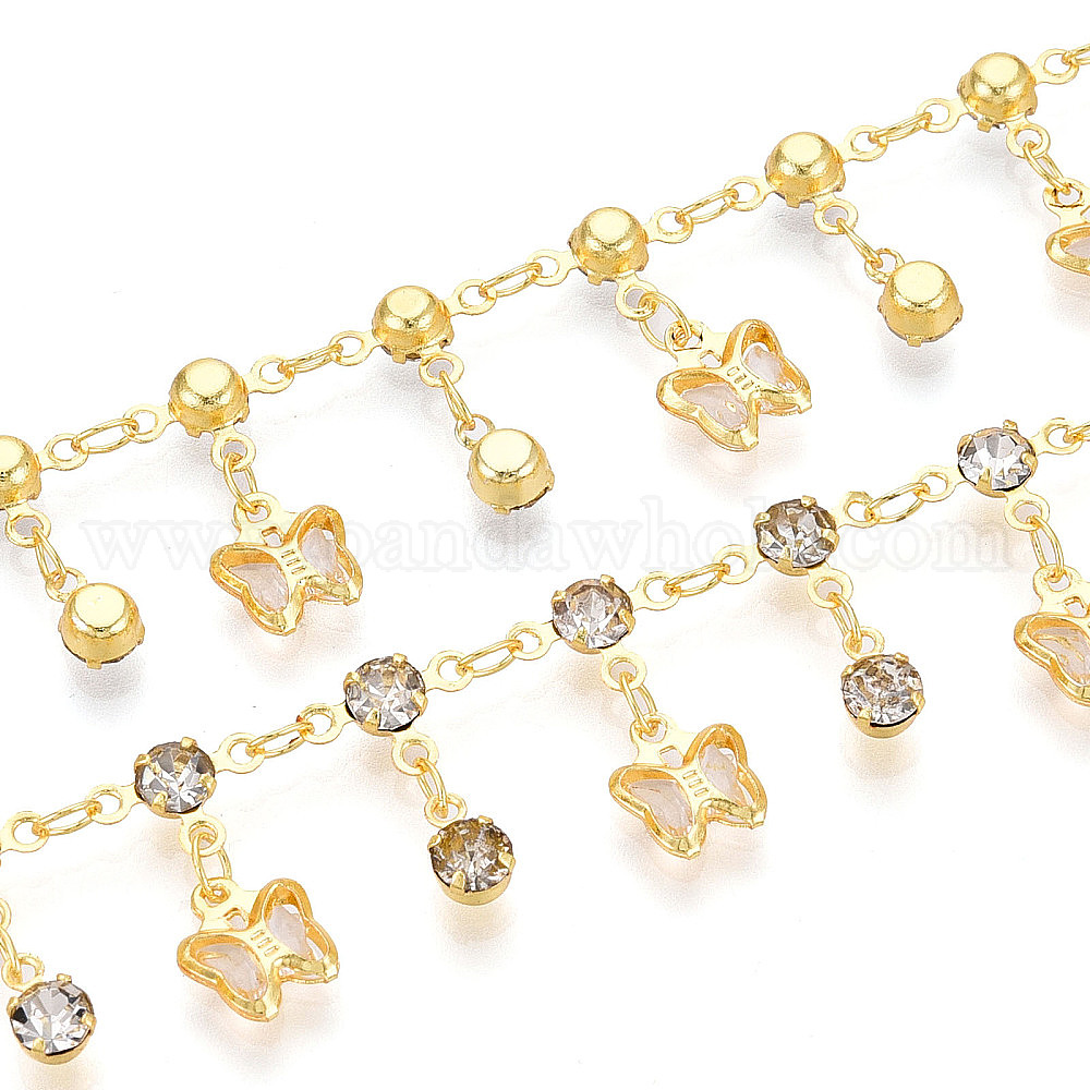 Латунные стеклянные цепочки-подвески в виде бабочек, пайки, с катушкой, золотые