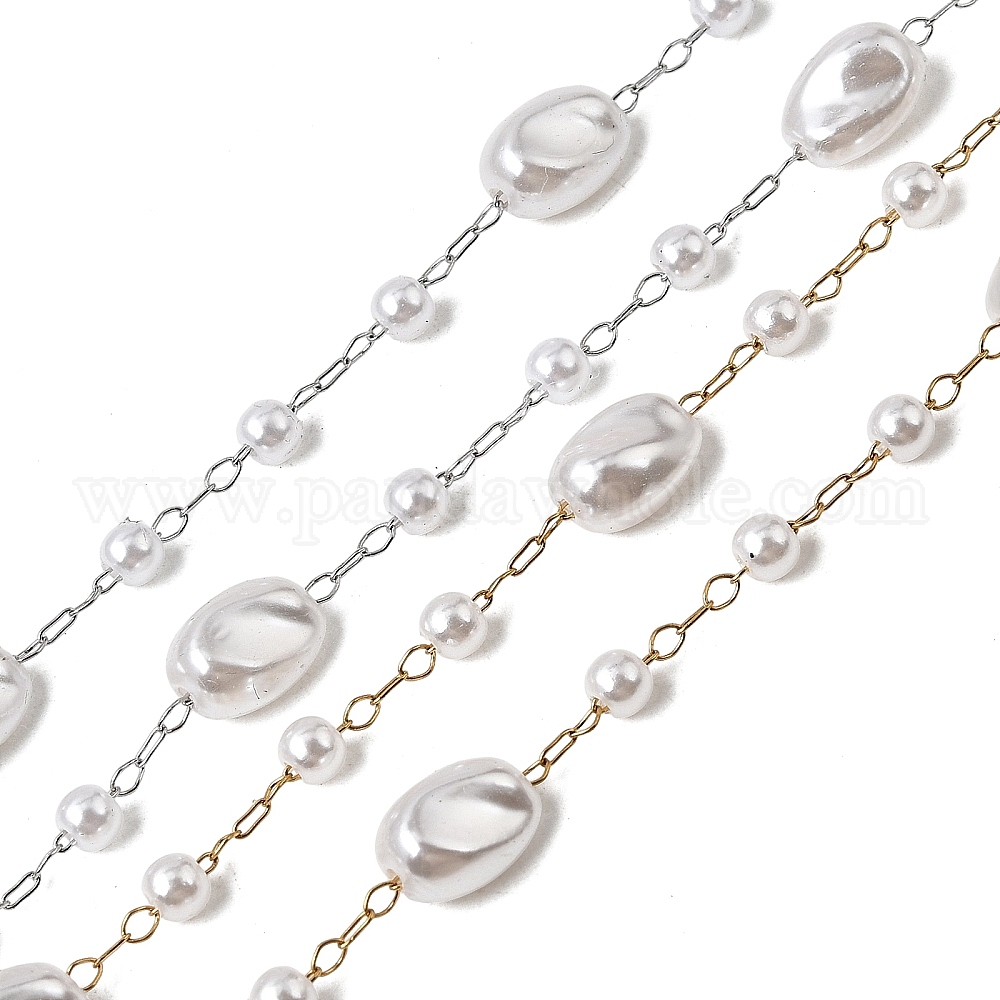 316 цепные цепи из нержавеющей стали, с круглыми и овальными бусинами из АБС-пластика, пайки, с катушкой