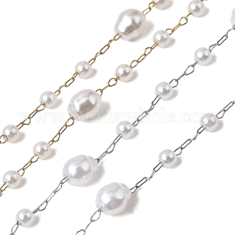 316 цепные цепи из нержавеющей стали, с круглыми и овальными бусинами из АБС-пластика, пайки, с катушкой