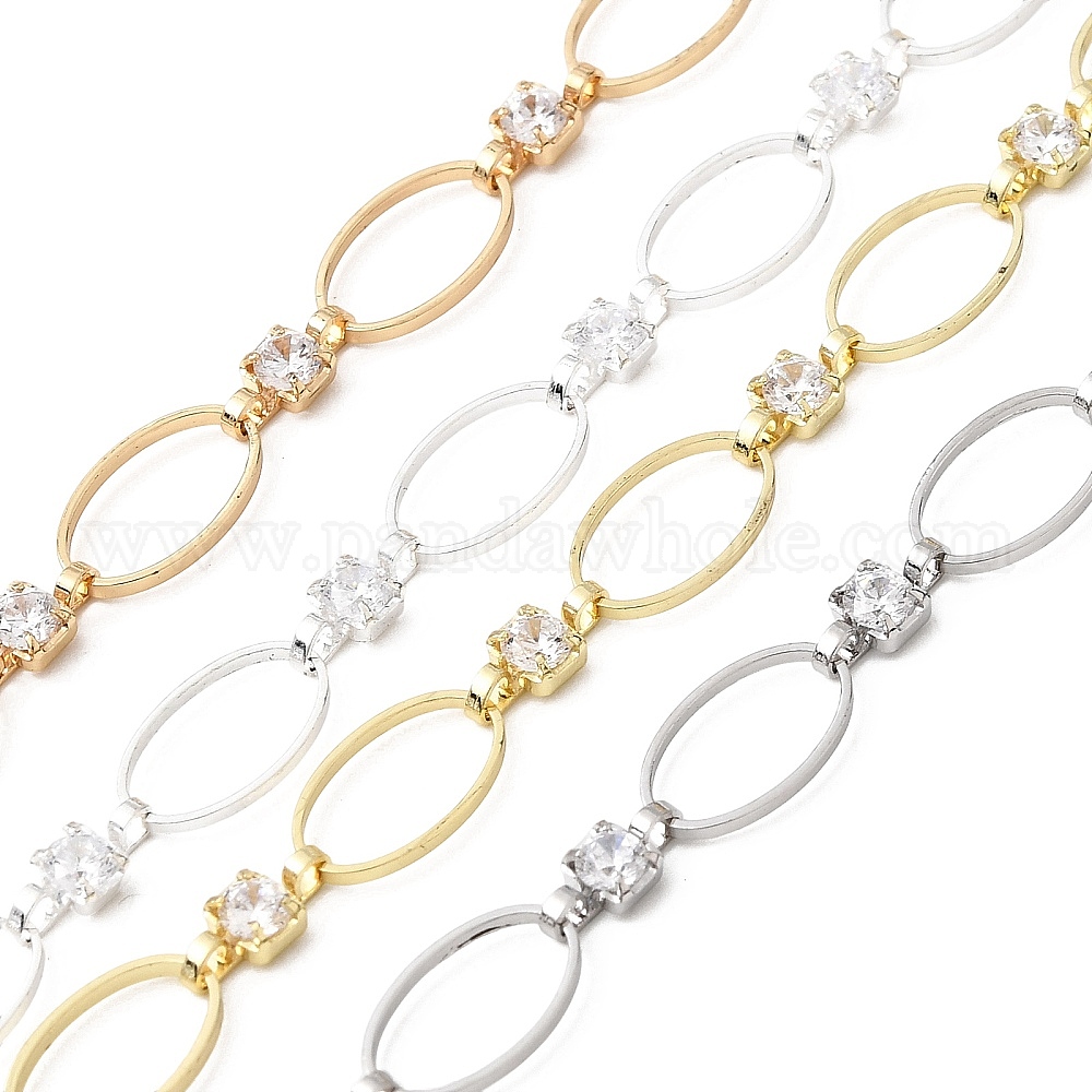 Цепи овального сечения из латуни ручной работы с прозрачными кубическими циркониями, несварные, с катушкой